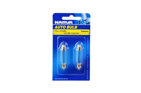 Narva 12V 5W Sv8-5.8 C5W Festoon Globes (Blister Pack Of 2)
