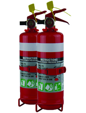 2x 1KG Dry Chemical ABE Fire Extinguisher with HD Metal Bracket