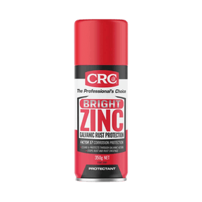 CRC BRIGHT ZINC is a zinc rich paint which produces a highly protective coating resembling the colour of new galvanising. The film is comprised of a high level of special water-resistant binder. BRIGHT ZINC contains more than 50% of the highest purity zinc in the dried film, to give galvanic rust prevention if the protective film becomes damaged.