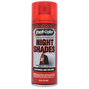 Dupli-Color Night Shades is a transparent red taillight lens coating that is designed to give your vehicle that custom appearance. Use for custom styling or restoring of faded or scratched lenses. Ideal for taillights, fog lights side markers or turn indicators.