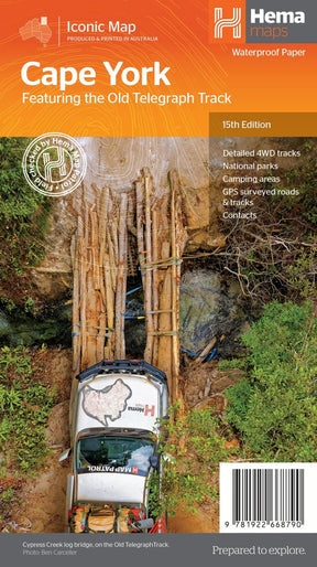 Hema's latest edition of its iconic Cape York map, on durable waterproof paper, combines Hema's entire database of roads and 4WD tracks with touring points of interest and topographic information.