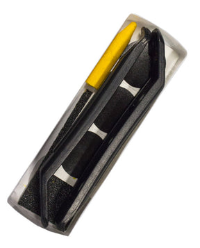 - Kit contains x6 stick-on patches, x2 tyre levers, crayon, sandpaper.