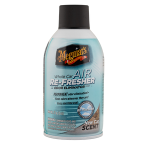 Has your car lost that "New Car" smell? Meguiars advanced Re-Fresher technology not only removes unwanted odours wherever they hide, but also replaces odours with a pleasant new car scent that lasts for weeks.