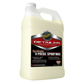 Meguiars Synthetic X-Press Spray Wax uses a unique blend of Hydrophobic Polymer Technology. to produce durable deep rich gloss with easy application and instant wipe off. VOC FREE Formula.