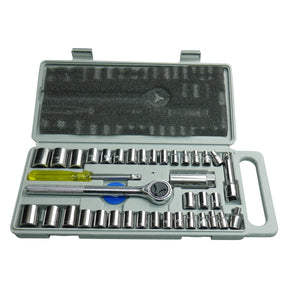Socket Set Metric & SAE ½” and ¼” Drive 40 Piece with Carry Case