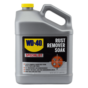 WD-40 Specialist Rust Remover Soak quickly dissolves rust and restores tools, equipment, and surfaces to bare metal without chipping, scraping or scrubbing.